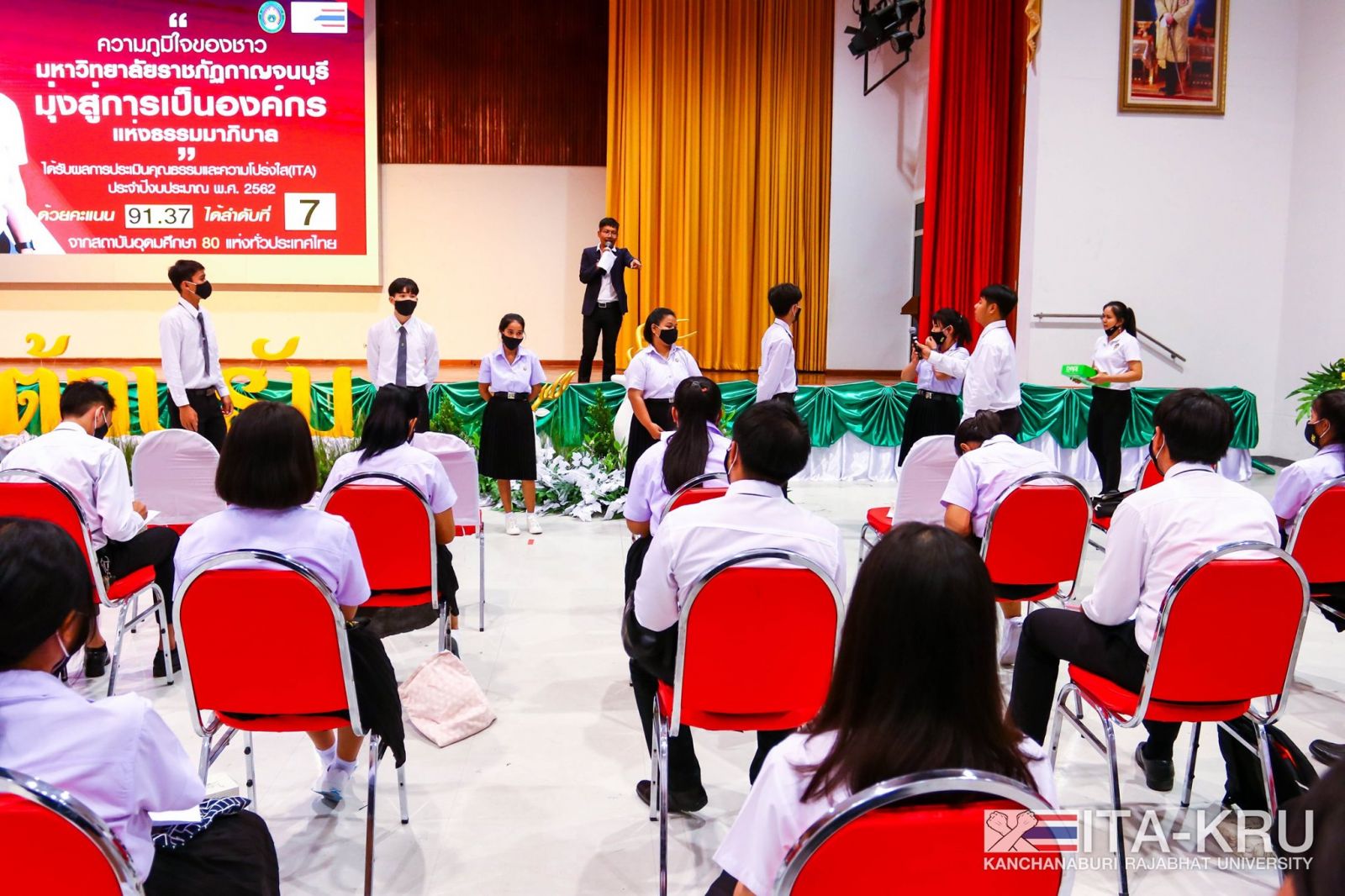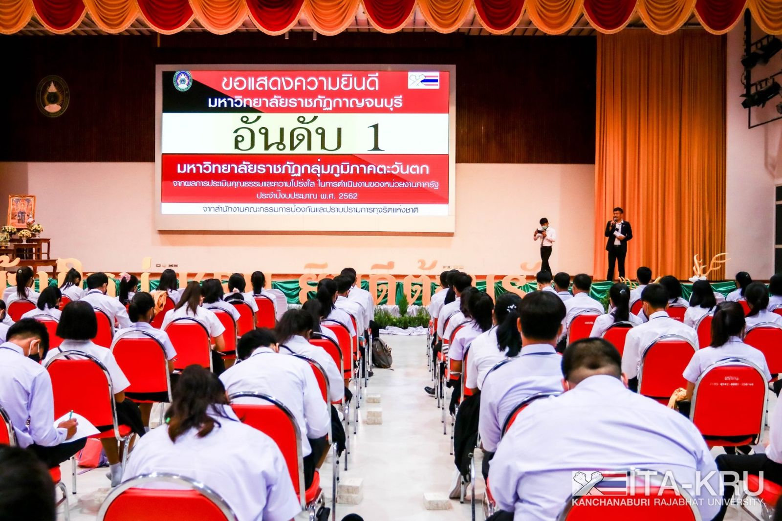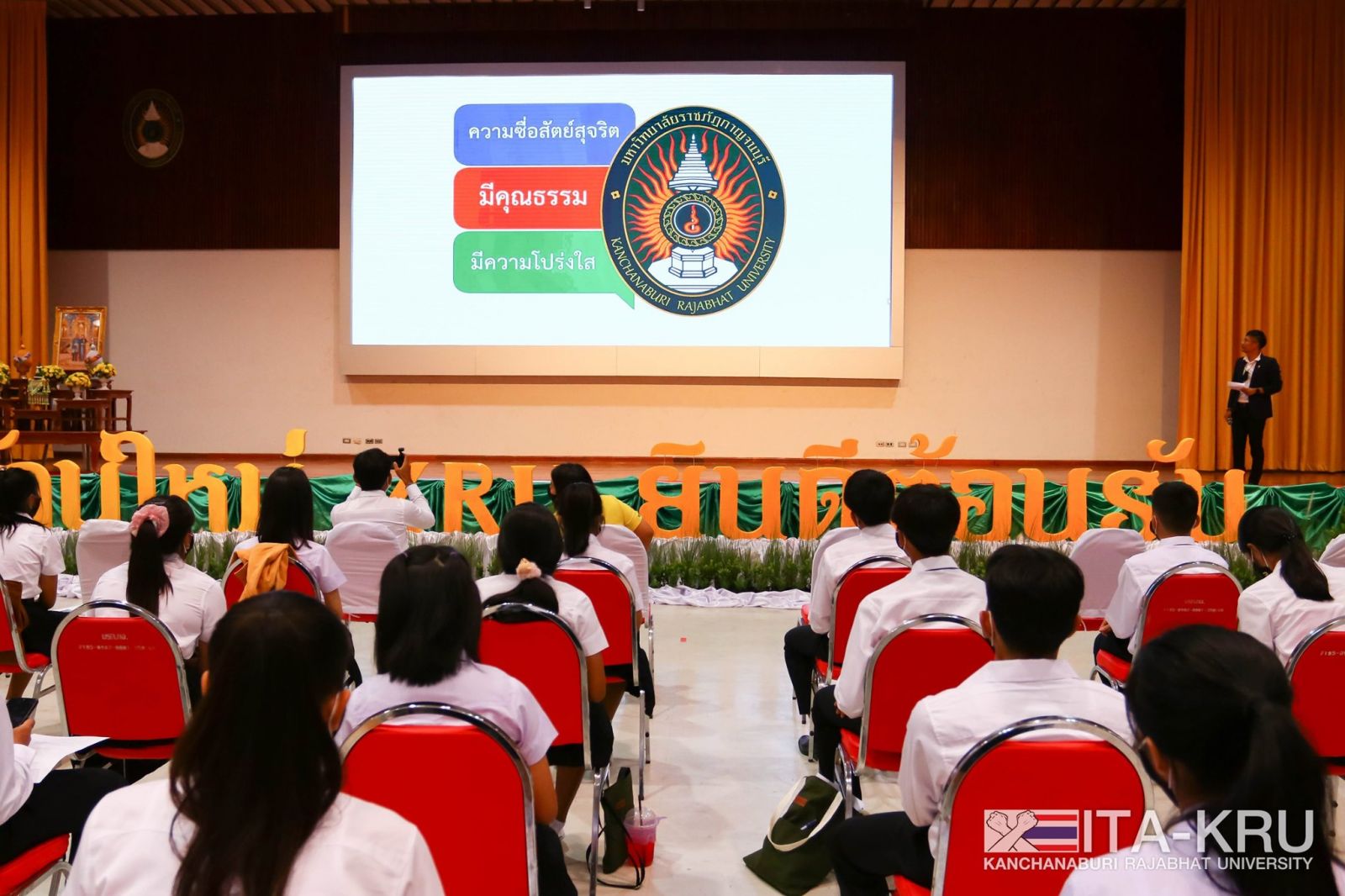 วันที่ 9 กรกฏาคม 2563 คณะกรรมการขับเคลื่อนการประเมินคุณธรรมและความโปร่งใสในการดำเนินงานของหน่วยงานภาครัฐ มหาวิทยาลัยราชภัฏกาญจนบุรี จัดกิจกรรมปลูกจิตสำนึกการมีคุณธรรมจริยธรรม นักศึกษาใหม่ 2563